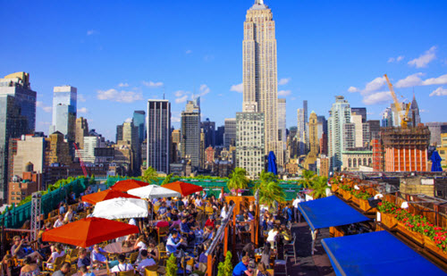 Le 230 Fifth est le plus connu et le plus touristique des rooftops new-yorkais. Il est très grand ce qui lui permet d’accueillir de nombreuses personnes. De plus, il est accessible au jeune de moins de 21 ans en journée ce qui est rare à New York. Il est situé dans le Flatiron District et offre une magnifique vue sur l’Empire State Building.
